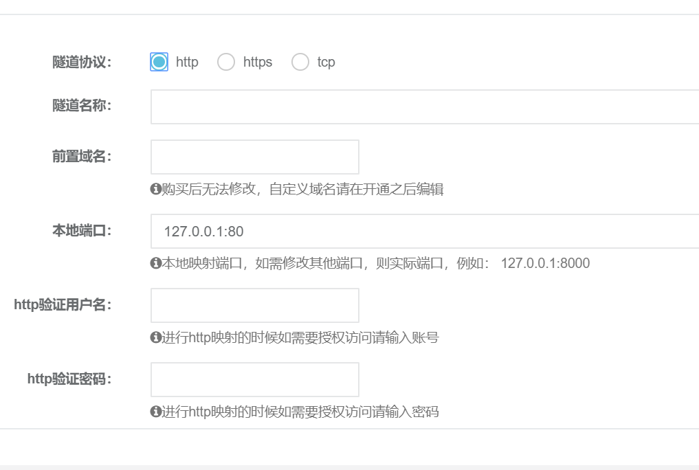 隧道名称和前置域名随便填就行了 端口填自己tomcat的端口