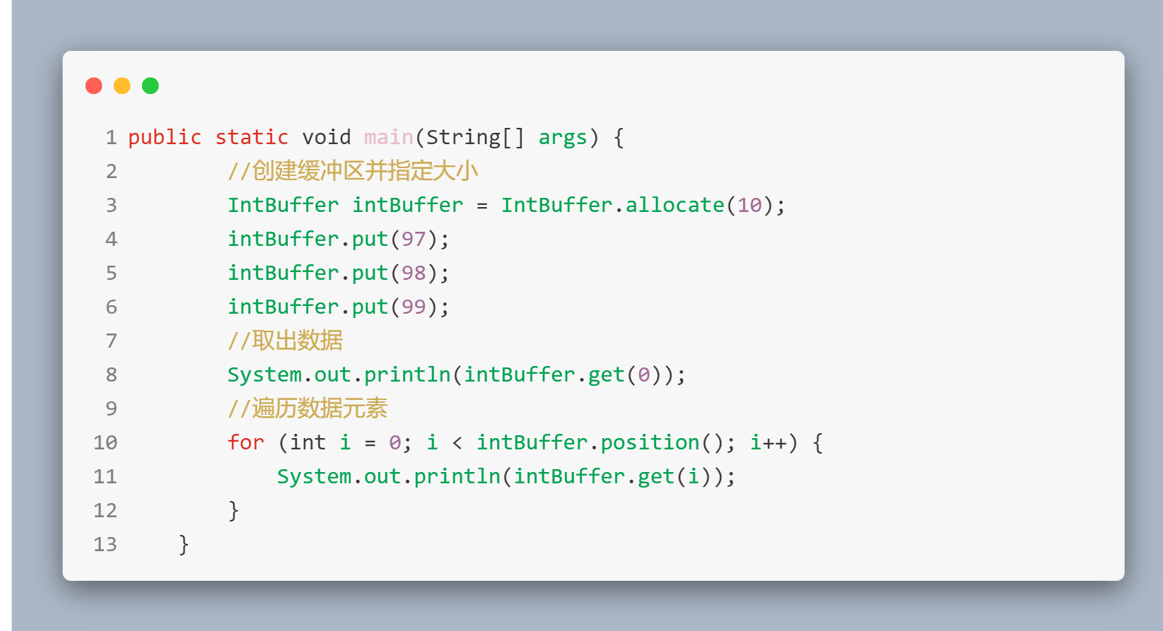 该方法是将现有的数组包装到缓冲区中来为缓冲区中的内容分配空间。