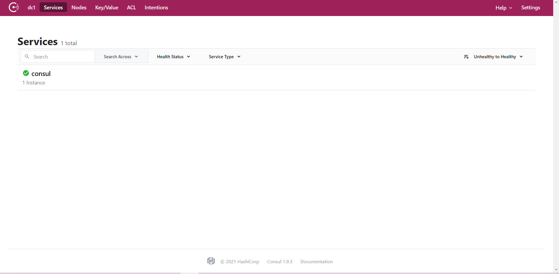 输入consul agent -dev启动consul,访问localhost:8500。