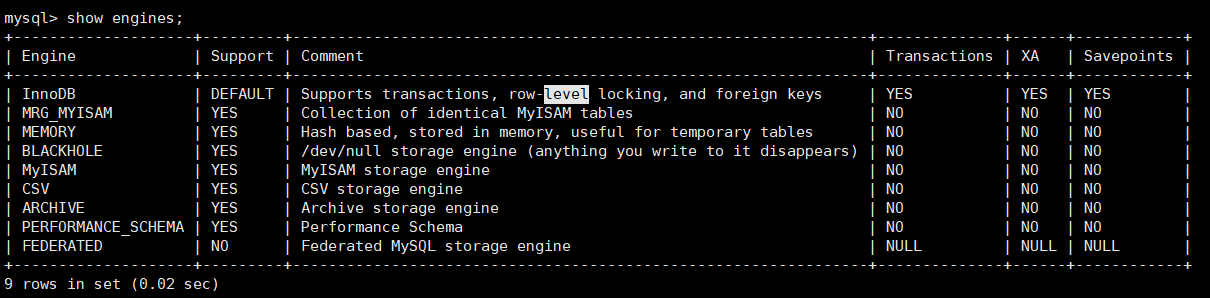 查看存储引擎show engines;