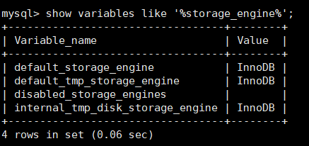 查看当前存储引擎show variables like '%storage_engine%';