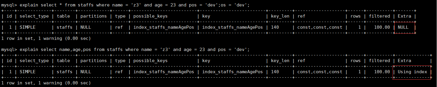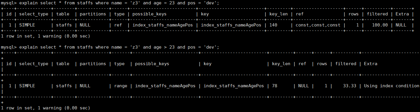 - 等值查询: