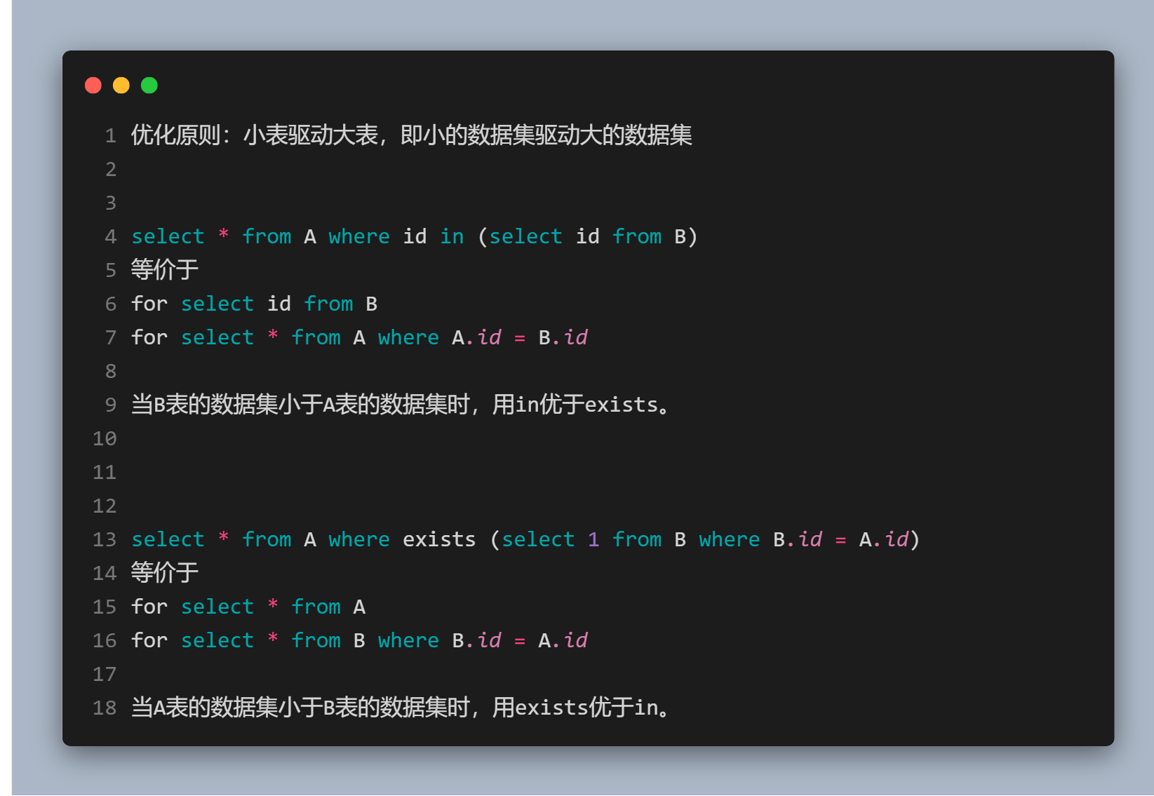 - 尽可能较少检索条件,避免间隙锁